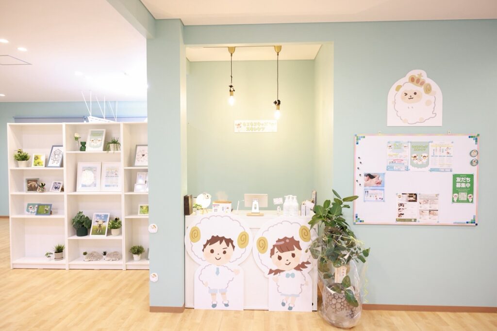 もこもこキッズスキンケアの入口には、可愛いカウンターとふわふわの羊さんたちがお出迎えしてくれます🐑💛