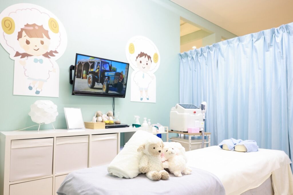 もこもこキッズスキンケアの施術ルームは、明るくて可愛い雰囲気の安心空間です🐑💛