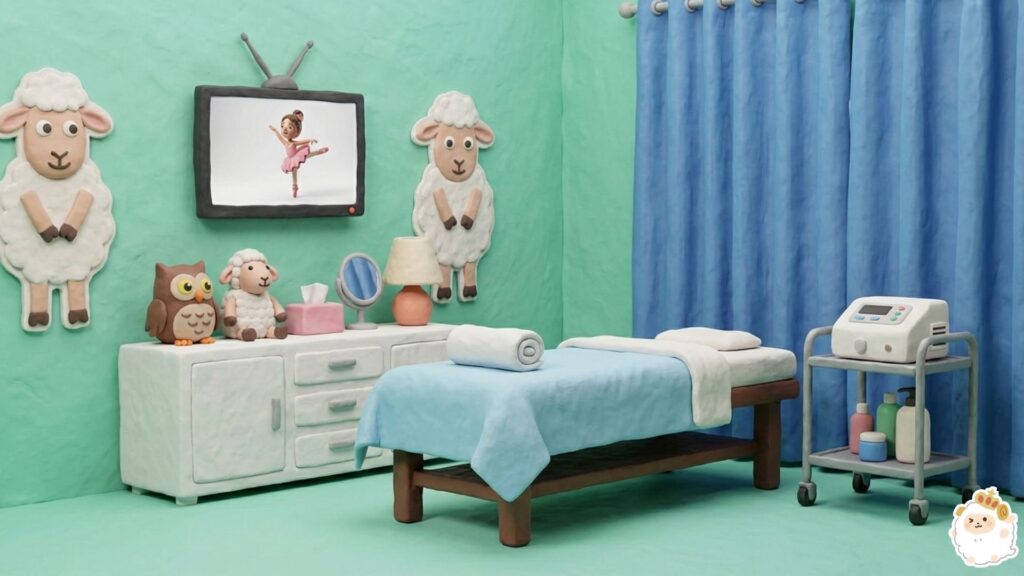 サロンの環境作りにも徹底してこだわっており、施術室は病院のような無機質で緊張する空間🏥ではなく、まるで自分のお家の子供部屋🐑にいるかのような、明るく温かみのある雰囲気に整えられています。