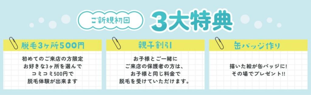 お子さまと保護者様ご一緒にご予約いただきますと、お子さまと同じ料金で脱毛を受けていただけます!