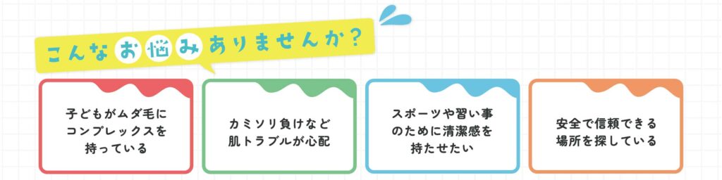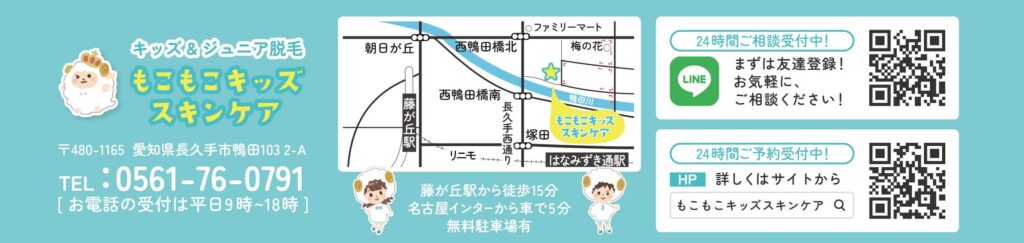 こんにちは愛知県長久手市に出来たキッズ専用脱毛「もこもこキッズスキンケア」です。