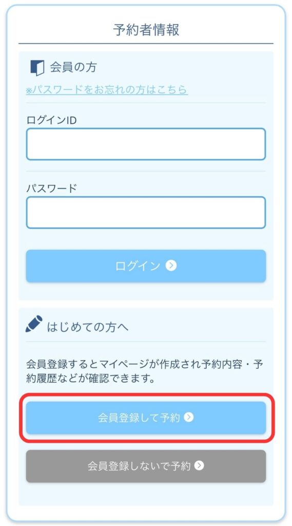 ⑤「会員登録して予約」を選択