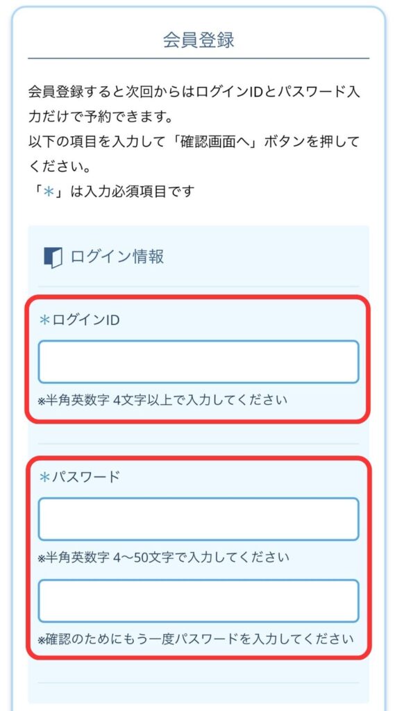 ご予約の際に登録したログインIDとパスワードが必要です。