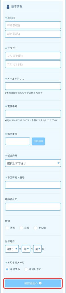 ⑦基本情報を入力し、「確認画面へ」