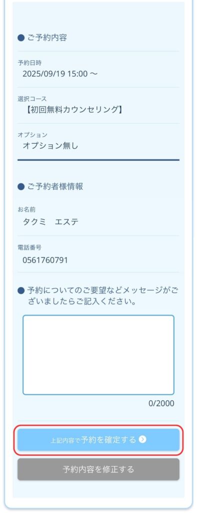 ご予約内容の確認や次回のご予約でも必要となりますので